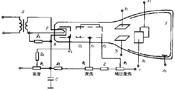 示波管的內(nèi)部結(jié)構(gòu)和供電圖示