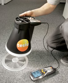 用于管道測(cè)量的流速傳感器都帶有伸縮桿,,便于在大型空氣管道中進(jìn)行操作。如果需要,還可以使用測(cè)量流速的探頭來(lái)測(cè)量溫度和濕度?梢愿鶕(jù)應(yīng)用需求選擇熱敏探頭、葉輪探頭或皮托管來(lái)測(cè)量管道中的流速。 測(cè)量室內(nèi)空氣質(zhì)量(二氧化碳)![]() 高濃度的二氧化碳會(huì)導(dǎo)致室內(nèi)空氣質(zhì)量變差,從而使人體感覺(jué)疲倦,無(wú)法集中精神,甚至生病。因此,為了保證良好的室內(nèi)空氣質(zhì)量,二氧化碳濃度一般不應(yīng)超過(guò)1 000 ppm。參考范圍為700到1500 ppm。 IAQ探頭(訂貨號(hào)0632 1535)尤為適合監(jiān)控室內(nèi)空氣質(zhì)量。此探頭可以同時(shí)記錄二氧化碳濃度、溫度和相對(duì)濕度。 在通風(fēng)管道內(nèi)使用皮托管進(jìn)行測(cè)量為了確保通風(fēng)和空調(diào)系統(tǒng)的正常功能,對(duì)通風(fēng)管道內(nèi)的空氣流速進(jìn)行檢測(cè)是非常重要的。 testo 435-3的內(nèi)部壓差傳感器用來(lái)測(cè)量高流速或高污染的氣流,皮托管測(cè)量范圍從0到64米/秒的空氣流速。testo 435-3可以同時(shí)顯示壓力、流速和體積流量。 在儀器背后的磁貼可以實(shí)現(xiàn)免提操作。 過(guò)濾器上壓差測(cè)量![]() 空調(diào)系統(tǒng)配有過(guò)濾器,可以防止室外空氣中的灰塵進(jìn)入室內(nèi)。應(yīng)定期檢查這些過(guò)濾器,以確保它們運(yùn)行良好。為此,,需要測(cè)量過(guò)濾器前后的壓力差。如果壓差過(guò)大,說(shuō)明過(guò)濾器被污染,需要更換。 testo 435-3內(nèi)置壓差傳感器,測(cè)量范圍0到25 hPa。在壓差測(cè)量過(guò)程中會(huì)進(jìn)行溫度補(bǔ)償,以得到精確讀數(shù)。在儀器背后的磁貼可以實(shí)現(xiàn)免提操作。 熱輻射的測(cè)量![]() 多功能測(cè)量?jī)xtesto 435能夠幫助您可靠地測(cè)量熱舒適度。連接一個(gè)熱輻射黑球探頭(訂貨號(hào)0602 0743),測(cè)量輻射熱量(也就是有效或感知溫度)。熱輻射黑球探頭測(cè)量的有效溫度與人體感知溫度的差值最好不超過(guò)± 0.41 K。 室內(nèi)溫度(空氣溫度和有效溫度)的測(cè)量要采取在同一個(gè)地方,相同的條件,如室內(nèi)空氣流速的一致的情況下進(jìn)行。 測(cè)量空氣和表面溫度為了讓人體感覺(jué)舒適,達(dá)到最佳狀態(tài),房間內(nèi)必須調(diào)節(jié)空調(diào)運(yùn)行工況。除了建筑結(jié)構(gòu)因素和個(gè)體感覺(jué),以下因素也會(huì)在很大程度上影響室內(nèi)空氣的舒適度:室內(nèi)空氣溫度以及墻壁、窗戶、底板和天花板的表面溫度。 testo 435提供滿足不同應(yīng)用的熱電偶探頭。表面探頭(訂貨號(hào)0602 0393)和空氣濕度探頭(訂貨號(hào)0636 1712)很適合分析結(jié)露問(wèn)題和霉變的情況。 出風(fēng)口風(fēng)速測(cè)量![]() 為了確保系統(tǒng)的高效使用,每個(gè)管道的進(jìn)出口體積流量都應(yīng)符合要求,,這是一個(gè)基本的前提條件。 在出風(fēng)口處,,適合采用直徑100mm的葉輪風(fēng)速探頭來(lái)測(cè)量體積流量(訂貨號(hào)0635 9435),因?yàn)樗鼈兛梢詫?duì)較大面積的流速進(jìn)行綜合測(cè)量,從而排除通風(fēng)格柵所產(chǎn)生的干擾(回路方法)。 在空氣格柵和提升閥的抽風(fēng)口或出風(fēng)口進(jìn)行測(cè)量時(shí),適合采用我們的風(fēng)量罩套裝(訂貨號(hào)0563 4170)以及直徑100mm葉輪風(fēng)速探頭(訂貨號(hào)0635 9435)。通過(guò)風(fēng)量罩來(lái)記錄整體體積流量值,不需要根據(jù)流速和面積進(jìn)行計(jì)算。這種流量測(cè)量方法簡(jiǎn)單、可靠。 一氧化碳測(cè)量![]() 一氧化碳(CO)是一種無(wú)味、無(wú)色、無(wú)刺激性的氣體,但是有毒。它是在熱源和燃機(jī)內(nèi)的煤、木頭、油、天然氣等含碳物質(zhì)燃燒不充分情況下產(chǎn)生的。一氧化碳濃度增加速度很快,尤其是在沒(méi)有足夠氧氣的情況下,并可能對(duì)健康產(chǎn)生不良影響。 即使環(huán)境空氣中含有微量的一氧化碳,環(huán)境一氧化碳探頭(訂貨號(hào)0632 1235)和testo 435-1也能夠檢測(cè)到。